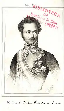 Luis Fernández de Córdova (or Córdoba) (August 2, 1798 in San Fernando, Cádiz – April 22, 1840 in Lisbon) was a Spanish military general, diplomat and first Marquis of Mendigorria.