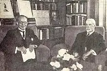 In 1916 García Guijarro visited his king, at the time sort of incommunicado at home arrest in Frohsdorf.[73] The episode remains somewhat obscure; it seems that at the time he still acted as a Spanish consul in Hamburg,[74] though other sources suggest he was briefly detained and interrogated at the police station, as the Austrian security services suspected him of spying.[75] Don Jaime handed him letters to the Spanish party executive; in the documents he demanded strict Carlist neutrality during the Great War.[76] There are doubts as to what happened later. A pro-French Carlist campaigner, Francisco Melgar, claimed that García Guijarro kept at least some documents to himself, which contributed to disorientation within Carlism and allowed pro-German propaganda by the key party theorist, Juan Vázquez de Mella.[77] A present-day historian maintains that the letters were promptly delivered to the party jefé Marquéz de Cerralbo.[78]
