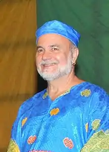 Luiz Mott is professor emeritus of the Department of Anthropology of the Federal University of Bahia (UFBA).[2] In his work Mott has traced homosexual desire in a number of indigenous Brazilian tribes such as the Bororo, Guató, Trumai, Tupinambá, Wai Wai and Xavante.[3] He has also explored intimate partner violence between gay, transsexual and transgender people in Salvador, the capital of the Brazilian state of Bahia.[4] In 1995, he declared that national hero Zumbi dos Palmares had been gay.[5]