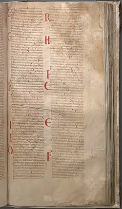 ![]() The Latin text of Luke 10:41-11:5 in Codex Claromontanus V, from 4th or 5th century. | |