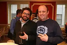 ![]() Smith (left) with Microsoft's Aaron Greenberg in San Francisco, March 2007 | |