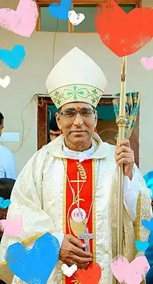 He was Appointed Bishop of Agartala on 11 Jan 1996 and received his episcopal consecration on 26 May 1996. His episcopal motto is "Lead Us Onward." He Chairs the North Eastern Diocesan Social Forum and as a representative of the Conference of Catholic Bishops of India (Latin rite) on the Governing Body of Caritas India.[2][3]