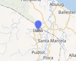 Luna, officially the Municipality of Luna, (Ilocano: Ili ti Luna; Tagalog: Bayan ng Luna), is a 2nd class municipality in the province of Apayao, Philippines. According to the 2020 census, it has a population of 21,297 people. [3] It currently serves as the de facto capital of Apayao where the provincial capitol and related offices is located the New Apayao Government Center. Kabugao remains as the de jure capital.