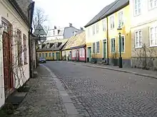 Lund is sometimes mentioned as the oldest town or city in present-day Sweden, although it has only been formally established as such for 300 years of its at least thousand-year history. It is old enough that its origins are unclear, but is presumed to have existed by the end of the Viking Age. Until the 1980s, the town was thought to have been founded around 1020 by either Sweyn I Forkbeard or his son Canute the Great of Denmark.[13] The area was then part of the kingdom of Denmark. But, recent archaeological discoveries suggest that the first settlement dated to circa 990, possibly the relocation of settlers at Uppåkra. The Uppåkra settlement dates back to the first century B.C.[14] and its remains are at the present site of the village of Uppåkra. King Sweyn I Forkbeard moved Lund to its present location, a distance of some five kilometres (3.1 miles). The new location of Lund, on a hill and across a ford, gave the new site considerable defensive advantages in comparison with Uppåkra, situated on the highest point of a large plain.