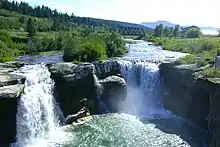 Lundbreck Falls is a waterfall of the Crowsnest River located in southwestern Alberta, Canada near the hamlet of Lundbreck.