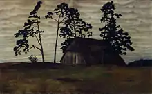 Lüneburg Heath was always relatively sparsely populated due to the poor soils in the area. The region was dominated by heath farming which was a less intensive form of land usage necessary for its large areas of barren terrain and heathland. An important economic sideline of past centuries was heathland beekeeping.[15] The villages were usually encircled by small tracts of woodland, sometimes interrupted by fields or meadows, and merged without clear boundaries into the surrounding landscape. The farmsteads were arranged relatively arbitrarily, many stood very close to one another; others were spread out at some distance from each other. They were loose cluster villages (lockere Haufendörfer). In order to prevent cattle trampling flat the gardens attached to the houses, village roads were enclosed with wooden fences and, later, with characteristic stone walls. The typical design of farmhouse was the Fachhallenhaus, a large timber-framed single building, in which people and animals lived under a single roof. Each village had relatively few complete farms; in Wilsede there were only four, in the church village (Kirchdorf) of Undeloh there were eleven, but that was an exception. In addition there were Koten (small, single houses), sheep pens and shared bakehouses. The farms themselves, however, were very large. In Wilsede all the features of a heath village described here may still be seen. Wilsede Heath Museum (Heidemuseum Wilsede) was established in a Fachhallenhaus and it gives an insight into the working and living conditions of a heathland farm around 1850.[16] Walsrode Heath Museum was one of the first German open air museums and also portrays the life of heathland folk. In rural parts of the region they still sometimes use today a Low German dialect called Heidjerisch. This word derives from the name given to inhabitants of the Lüneburg Heath – the Heidjer.