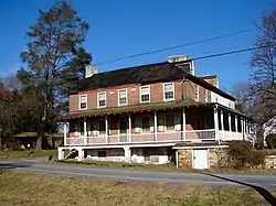 Lunn's Tavern, also known as The Wilkins Property, is a historic inn and tavern located in London Britain Township, Chester County, Pennsylvania. It has three sections. The original section was built about 1760, and is a two-story, stone structure with a gambrel roof. Part of the original section was altered when the brick addition was made in 1830. The modifications included adding stucco to the stone exterior walls and modifying the roof to the gable style. The 1830 brick addition has a wooden porch structure. It was the site of the writing of a famous letter from Thomas McKean to George Read on September 26, 1777, detailing the situation in Delaware and his actions upon assuming the presidency of the State of Delaware.[2]