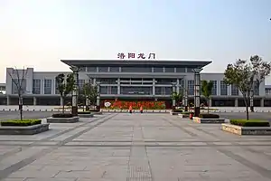 The Luoyang Longmen railway station (simplified Chinese: 洛阳龙门站; traditional Chinese: 洛陽龍門站; pinyin: Luòyáng Lóngmén Zhàn) is a railway station part of the Xuzhou–Lanzhou High-Speed Railway. The station is located in Luoyang, Henan, China. It was previous known as Luoyang South railway station (simplified Chinese: 洛阳南站; traditional Chinese: 洛陽南站; pinyin: Luòyáng Nán Zhàn).
