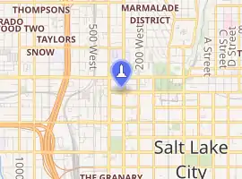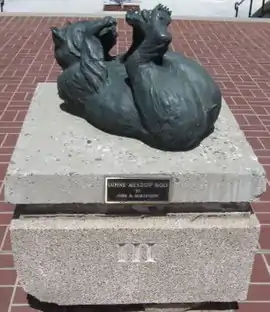 Lupine Meadow Roll is a 1990 bronze sculpture by John B. Mortensen, installed in Salt Lake City's Triad Center in the U.S. state of Utah. The bear sculpture measures approximately 1 ft. x 8 in. x 2 ft. and rests on a concrete base which measures approximately 2 x 2 x 2 ft. According to the Smithsonian Institution, which surveyed the artwork as part of its "Save Outdoor Sculpture!" program in 1993, this cast is the ninth of twenty.[1]