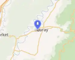 The caverns are situated in the Shenandoah Valley, just to the west of the Blue Ridge of the Appalachian Mountains in Luray, Virginia. The valley extends northeast to southwest along the northwest side of the Blue Ridge. Cave Hill, 927 feet (283 m) above sea level, had long been an object of local interest on account of its pits and oval hollows or sinkholes (known as karst) through one of which the discoverers of Luray Caverns entered.[5]