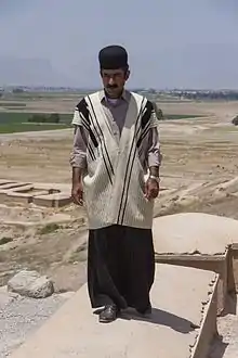 Chugha (چوغا): A masculine wrapper that is used prominently by Bakhtiari Lurs. Chugha is made by sheep wool and usually is woven by Bakhtiari nomads.[4]