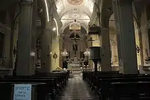 Inside there are the processional statues of Bartholomew the Apostle and Margaret the Virgin made by Antonio Brilla in the mid 19th century. There is a statue of Saint Bartholomew from the 16th century. Inside the church there are 4 paintings and a cycle of paintings of the Stations of the Cross. The church has a Latin plan with 3 naves with a high altar of which the choir is behind. The facade was restored in the 90s of the 20th century.