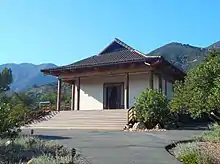 In 1946 Riggs began a partnership with Arvin Shaw, continuing to focus on residential work, though in a more modernist style, as seen in her design for the Alice Erving house in Montecito (1951). The Erving house is well known for its unique siting that maintains privacy while opening up to expansive views of the surrounding mountains, as well as for its floor-to-ceiling windows and vaulted ceilings. In 1951, she left the partnership to work on her own, continuing to do residential as well as some commercial work. One of her most famous buildings from this era is her design for the Santa Barbara Vedanta Temple (1956), noted for its reflection of early South Indian wooden temple architecture.[7]