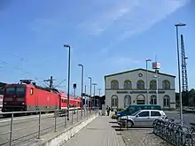 Lutherstadt Wittenberg Hauptbahnhof (until December 2016: Bahnhof Lutherstadt Wittenberg in German) is a railway station located in Wittenberg, Germany. The station opened on 3 August 1859 is located on the Berlin–Halle railway and Roßlau–Falkenberg/Elster railway. The train services are operated by Deutsche Bahn. With over 5000 passengers per day, it is the most important railway station in the eastern part of the state of Saxony-Anhalt.