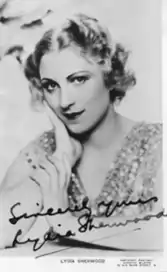 Lydia Sherwood (5 May 1906 – 20 April 1989) was a British film actress and stage actress.[1] She made her debut on stage in Daisy Fisher's comedy play Lavender Ladies.[2] She was married to the poet Lazarus Aaronson from 1924 to 1931.[3]