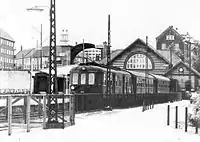 Lygten Station (København L) is the former terminus of the private Copenhagen–Slangerup Railway which opened on 19 April 1906, connecting Copenhagen to the small town of Slangerup to the northwest of the city. The National Romantic station building was designed by Heinrich Wenck, head architect of the Danish State Railways, and got its name from Lygteåen, a local stream. With its location in open surroundings on the outskirts of Nørrebro, the station was quite a bit from the city center, but it was supposed to be temporary until the exact routing of the various new railways near Copenhagen that were in planning at the time had been finalized. The railway crossed Nørrebrogade and continued through Nørrebro to the old Nørrebro station which was located where Nørrebro Park is today.[1]