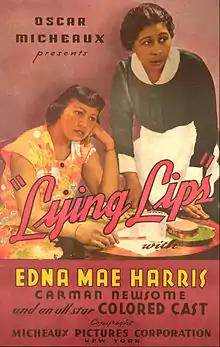 Lying Lips is a 1939 American melodrama race film written and directed by Oscar Micheaux who co-produced the film with aviator Hubert Fauntlenroy Julian, starring Edna Mae Harris, and Robert Earl Jones (the father of James Earl Jones). Lying Lips was the thirty-seventh film of Micheaux.[1] The film was shot at the Biograph Studios in New York City.[2]