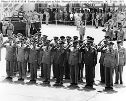 Sherman died unexpectedly on July 22, 1951, while on a diplomatic trip to Europe. As acting chief of naval operations, McCormick was one of six candidates considered to succeed Sherman, along with Admirals Arthur W. Radford, Robert B. Carney, and William M. Fechteler; and Vice Admirals Richard L. Conolly and Donald B. Duncan. During the selection process, McCormick took himself out of the running by loudly expressing "his desire for a fleet command."[7] Fechteler was named chief of naval operations on August 1, 1951, and McCormick was selected to replace Fechteler as commander in chief of the Atlantic Fleet. When the change was announced, press reports noted that this would be McCormick's first fleet command, and speculated that the lack of a fleet command in his record had eliminated him from consideration as Sherman's successor.[8]