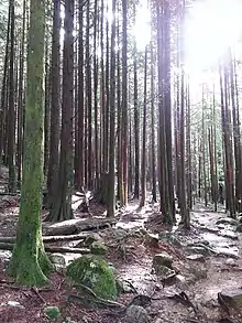 The park is covered in dense temperate rainforest that houses a wide array of organisms.[4] Like the neighbouring Lynn Canyon Park, Lynn Headwaters is a second growth forest. Cedar stumps can be seen throughout the park, reminding visitors of old logging practices.