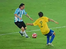 Rafinha made his senior debut for Brazil on 26 March 2008 in a friendly match against Sweden.[37] He then went through a six-year absence from the national team, making his second appearance in a friendly against South Africa on 5 March 2014. In May 2014, he was named by Brazil head coach Luiz Felipe Scolari as a standby player for the 2014 FIFA World Cup.[38]
