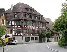 The Hohes Haus is a half-timbered building which was built in 1613 by Salomon Buchhorner, from the Cathedral of Constance, as a tithe barn. A court room was added in 1620. The walls are decorated with late Renaissance paneling and carvings. The building was restored in 1972.[16]