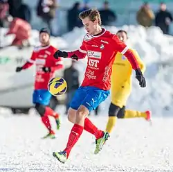 Karlsson wanted to continue playing first tier football, so he decided to move from Växjö to play with Åtvidabergs FF for the 2014 season.[3] He signed a three-year-long contract with the club.[4] His first goal for Åtvidabergs FF came against Gefle IF on 21 April 2014.[5]