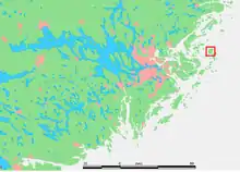 The nature of the Möja Archipelago reflects its location on the edge to the peripheral archipelago region. While traces of early human activities are plentiful, some areas are untouched barren cliffs and marshy grounds.[1] Möja is today a popular tourist destination visited year around by the steamship company Waxholmsbolaget as well as by private boaters touring the greater Stockholm archipelago.