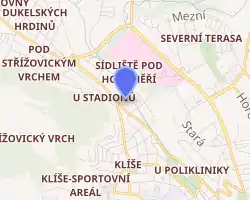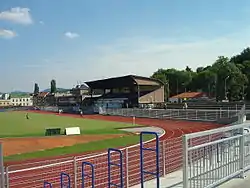 Městský stadion is a multi-purpose stadium in Ústí nad Labem, Czech Republic. It is mainly used for football matches and is the home ground of FK Ústí nad Labem. The stadium had a capacity of 3,000 people (555 seated) before reconstruction. When Ústí were promoted to the Gambrinus liga in 2010, it was ruled that the stadium did not meet the league criteria required by the football association. Therefore, FK Ústí nad Labem's 2010–11 Gambrinus liga matches were played at Na Stínadlech.[1] The ground was upgraded to be available the next season, although the club was subsequently relegated. The reconstructed stadium was reopened in 2014 with a capacity of 4,000 seats.[2]