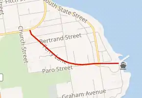 Prior to the opening of the Mackinac Bridge, travelers wishing to venture from St. Ignace to Mackinaw City had to do so via ferry.[2] M-122 began at US 2 (now Business Loop Interstate 75) near Straits State Park and traveled through town along Ferry Road where it ran southeasterly from the main highway. East of Hornbach Street M-122 curved around to the east near Paro Street. The highway ended at the State Ferry Docks on the southeast side of the city next to the Coast Guard station.[3]