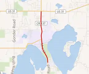 - Michigan Department of Transportation & V3 Consultants (August 31, 2001). "Grand Traverse County" (PDF) (Map). Right-of-Way File Application. Scale not given. Lansing: Michigan Department of Transportation. Sheet 24. Retrieved June 25, 2012.