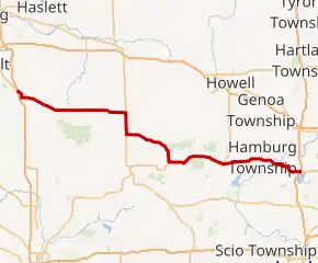 | Ingham | Mason | 0.000 | 0.000 | Western terminus at exit 66 on US 127 | |