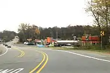 North of town, M-36 turns south on Gregory Road. The highway continues as Main Street in the community to Carr Street; the highway turns back eastward on Carr Street in Gregory. As the highway runs easterly, it skirts the northern edge of the Pinckney State Recreation Area and the southern edge of the Timber Trace Golf Club. As Main Street in Pinckney, M-36 passes through the center of town. At Howell Street, County Road D-19 merges in from the south. The two designations run concurrently along Main Street to Pearl Street, where D-19 turns northward. At the intersection with Dexter Street, M-36 intersects the western terminus of D-32, the "Highway to Hell". East of Pinckney, M-36 passes between Rush and Bass lakes in the Pettysville area. Immediately east of there, the highway passes through woods between Oneida and Zukey lakes in Lakeland. The trunkline passes to the south of Buck Lake and then meanders through Hamburg southeasterly. M-36 ends as 9 Mile Road at exit 54 on US 23 in Whitmore Lake.[4][5]