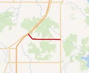 M-80 starts at exit 378 along Interstate 75 (I-75) near Kinross. A short section of it runs concurrently with H-63 (Mackinac Trail) to connect to ramps in the interchange. This section runs northeast–southwest across the freeway from Mud Lake before the M-80 designation turns southeasterly along Tone Road running past Kinross Lake in a forested area. Tone Road curves sharply northeasterly and then southeasterly to run around the north end of the runway complex at the Chippewa County International Airport. The highway runs due east past the airport terminal area to the south and a prison and the residential area of the former Kincheloe Air Force Base to the north. Near Dukes Lake, M-80 crosses Gaines Highway and leaves the former base and runs through forest to the intersection with M-129 where M-80 terminates. The roadway continues eastward as 17 Mile Road in Pickford Township.[4][5]