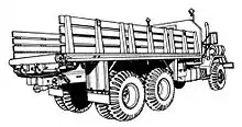 Tractor trucks normally towed a 12-ton, 2-axle trailer. There were stake and platform, van, low-bed, and tanker bodies. Six-ton, 2-axle expansible vans and 6-ton, single-axle vans were also used.[14][15][16]