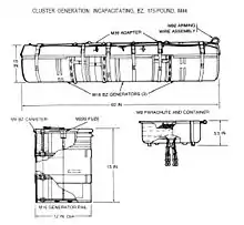 The M44 had a diameter of 15 inches (380 mm) and a length of 60 inches (1.5 m).[3] Weighing 175 pounds (79 kg) the M44 generator cluster was a cluster bomb which was designed to deliver approximately 39 pounds (18 kg) of the chemical incapacitating agent BZ.[3]