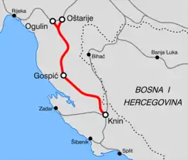 ![]() Lika railway. M604 continues past Knin to Split | |||||||||||||||||||||||||||||||||||||||||||||||||||||||||||||||||||||||||||||||||||||||||||||||||||||||||||||||||||||||||||||||||||||||||||||||||||||||||||||||||||||||||||||||||||||||||||||||||||||||||||||||||||||||||||||||||||||||||||||||||||||||||||||||||||||||||||||||||||||||||||||||||||||||||||