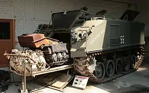 The M75 Armored Infantry Vehicle is an American armored personnel carrier that was produced between December 1952 and February 1954, and saw service in the Korean War. It was replaced in U.S. service by the smaller, cheaper, amphibious M59. The M75s were given as military aid to Belgium, where they were used until the early 1980s (771 units in 1976[4]). 1,729 M75s were built before production was halted.