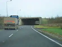 Construction of 28 km of motorway linking the Kilcullen bypass with the Carlow bypass began in February 2008. This section was completed and opened on 21 December 2009.[1] It runs between Junctions 2 and 4 on the M9 corridor.
