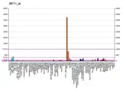 MAFF is broadly but differentially expressed in various tissues. MAFF expression was detected in all 16 tissues examined by the human BodyMap Project, but relatively abundant in adipose, colon, lung, prostate and skeletal muscle tissues.[7] Human MAFF gene is induced by proinflammatory cytokines, interleukin 1 beta and tumor necrosis factor in myometrial cells.[8]