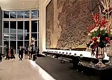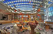 The resort's public spaces feature a permanent collection of art inspired by the Washington metropolitan area and developed in collaboration with Prince George's County Arts and Humanities Council, Atlantic Arts, and RareCulture.[16][17] Artists, sculptors, and photographers featured in the collection include Alice Aycock, Charles Hinman, Chul Hyun Ahn, John Safer, Liao Yibai, Margaret Boozer, Martha Jackson Jarvis, Sam Gilliam, and Terry O'Neill.[16][17] The west entrance to the facility features a 25-by-15-foot (7.6 m × 4.6 m) iron archway composed of "found objects" such as farming tools, children's toys, wheels and axes designed by Bob Dylan.[18]
