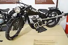 In 1938 the engine was improved with dual exhausts exiting the cylinder at the rear and the carburettor moved to the side of the engine.[1] The gearchange was changed from hand to foot operated.[7] Some machines were purchased by the military, including the 10th Motorized Cavalry Brigade. There was also a state-funded purchase scheme for officers to buy the motorcycle.[6]