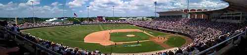 The program has set many attendance records at Dudy Noble Field. SEC and Super Regional weekend games usually draw the largest crowds to Dudy Noble Field. Mississippi State currently holds the NCAA record for the largest single game on-campus baseball attendance at 15,586 and the largest regular season crowd for a 3-game weekend series at 39,181. In 2021, in a Super Regional against Notre Dame, Mississippi State set NCAA attendance records for Super Regional games with 14,385 and 13,971 fans and a record total for a 3-game series of 40,140.[13][14] More than 5 million spectators have attended games at the venue since the university started tracking attendance numbers in 1976.[5][15] Mississippi State holds nine of the top 10 and 17 of the top 25 on-campus crowds in college baseball history, including 14 crowds of over 12,000 and 42 crowds of over 10,000.
