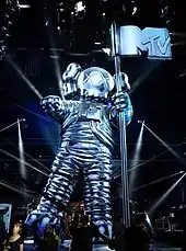 The MTV Video Music Awards (commonly abbreviated as the VMAs) is an award show presented by the cable channel MTV to honor the best in the music video medium. Originally conceived as an alternative to the Grammy Awards (in the video category), the annual MTV Video Music Awards ceremony has often been called the "Super Bowl for youth", an acknowledgment of the VMA ceremony's ability to draw millions of youth from teens to 20-somethings each year.[1] By 2001, the VMA had become a coveted award.[2] The statue given to winners is an astronaut on the moon, one of the earliest representations of MTV, and was colloquially called a "moonman". However, in 2017, Chris McCarthy, the president of MTV, stated that the statue would be called a "Moon Person" from then on.[3] The statue was conceived by Manhattan Design—also designers of the original MTV logo—based on the 1981 "Top of the Hour" animation created by Fred Seibert, produced by Alan Goodman, and produced by Buzz Potamkin at Buzzco Associates. The statue is now made by New York firm Society Awards.[4] Since the 2006 ceremony, viewers are able to vote for their favorite videos in all general categories by visiting MTV's website.[5]