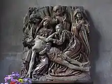 The Maître de Chaource was an unidentified sculptor who worked in the late 15th and early 16th century, in the French town of Chaource. While many works are attributed anonymously to him or his atelier, some scholars have identified Jacques Bachot[1] as the artist. There is certainly circumstantial evidence which points to Bachot;[2] he was a contemporary of the Maître de Chaource and often worked in the same locations and works by Bachot such as that in the church of Saint-Laurent in Joinville, of which fragments are held in the Joinville Town Hall, show great similarities to the work of the Maître de Chaource.[2]