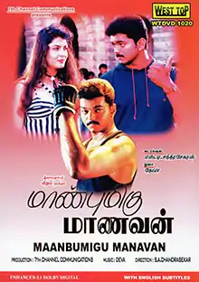 Maanbumigu Maanavan (transl. Respectable student) is a 1996 Indian Tamil-language action drama film and was directed by S. A. Chandrasekhar. The film stars Vijay and Swapna Bedi, while Chinni Jayanth, Manivannan, Vijayakumar, Mansoor Ali Khan and Shrinath play other supporting roles. Music was composed by Deva. Vijay had a completely different hair and beard style, and an image makeover in this movie. This was the debut movie for Swapna Bedi. The songs were a big hit but the film ran for more than 50 days in theaters across Tamil Nadu. The film ended as a decent hit at the box office and established Vijay as a mass hero.[2]