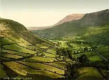 In the opinion of W. F. T. Butler the MacDonnell claim was of doubtful legality,[32] while according to George Hill they did not establish a permanent (or any) presence in the Glens until Alexander Carragh in the early 16th century, who is noticed campaigning in the Irish annals in the 1520s.[33] He was a strong leader with a large following,[34] and it is in this decade the Bissetts appear to lose control of their lordship following the Battle of Knockavoe. One of Alexander Carragh's sons, the celebrated Sorley Boy, was finally allowed by Elizabeth I in 1560 to be a tenant of the lands he claimed "by inheritance,"[31] but the MacDonnells continued to struggle to gain a foothold because of Ulster's leading prince, Shane O'Neill, who continually harassed them. In 1573, six years after O'Neill's death, Sorley Boy (re-)petitioned, and this time for "a portion of the Glynns claimed by him by inheritance from the M[B]issetts", with the government thinking it a good idea to grant because they could use him against the Irish who were still refusing to submit.[35] However, he himself soon became involved in a major conflict with the English, and ended up settling in The Route, the old MacQuillan lordship to the west of the Glens, while a younger brother, Donnell Gorme MacDonnell, swore fealty to Elizabeth in 1584 for "so much of the Glynns in Ulster as were the lands of Myssett, otherwise Bissett", agreeing to pay what yearly rents the Lord Deputy Henry Sidney decided, this being 60 beeves (cattle).[36] Uncertain is the actual extent of the territory being granted at this moment and the size of the lordship certainly varied over time. But less than two years later, and shortly before Elizabeth and James VI of Scotland agreed in the 1586 Treaty of Berwick that the MacDonnells would finally have the right to stay in Ireland, the Lord Deputy granted the lordship, the yearly rents again being 60 beeves, to Angus MacDonnell of Dunnyveg, another relative of Sorley Boy, with all its castles and "Myssett alias Byssett's lands" save Olderfleet Castle (by this time of uncertain origin to the parties involved), this to become the property of the Queen.[37]