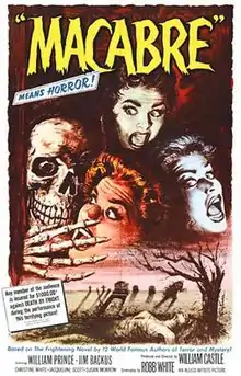 Macabre is a 1958 American horror film directed by William Castle, written by Robb White, and starring William Prince and Jim Backus. The film falls into both the horror and suspense genres.[3]