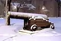 A cannon flanking the monument