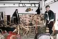 On the ground floor are displayed folk costumes—men's and women's formal and everyday wear—from all over Macedonia, including Sarakatsan and Thracian costumes and the uniform of a Macedonian freedom fighter. There are also hand-embroidered silks and handwoven woollen bedding, together with domestic furniture, utensils both decorative and utilitarian of the nineteenth century, numerous documents of the nineteenth century and personalia of Macedonian freedom fighters. Naturally, the museum also has traditional agricultural implements (a plough, mattocks, water troughs, gin traps) and the accoutrements of weaving (a loom, spinning wheels, spindles, shuttles).[1]
