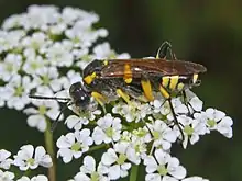 The adults of this sawfly can mostly be encountered from May through July.[3] Adults mainly feed on pollen and nectar, especially on Heracleum sphondylium,[4] but they feed also on honeydew and small insects.[3] The larvae are monophagous and develop on the leaves of blackberries and raspberries (Rubus fruticosus).[3][4]